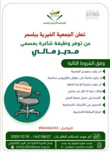 عن توفر وظيفة شاغرة بمسمى (مدير مالي)